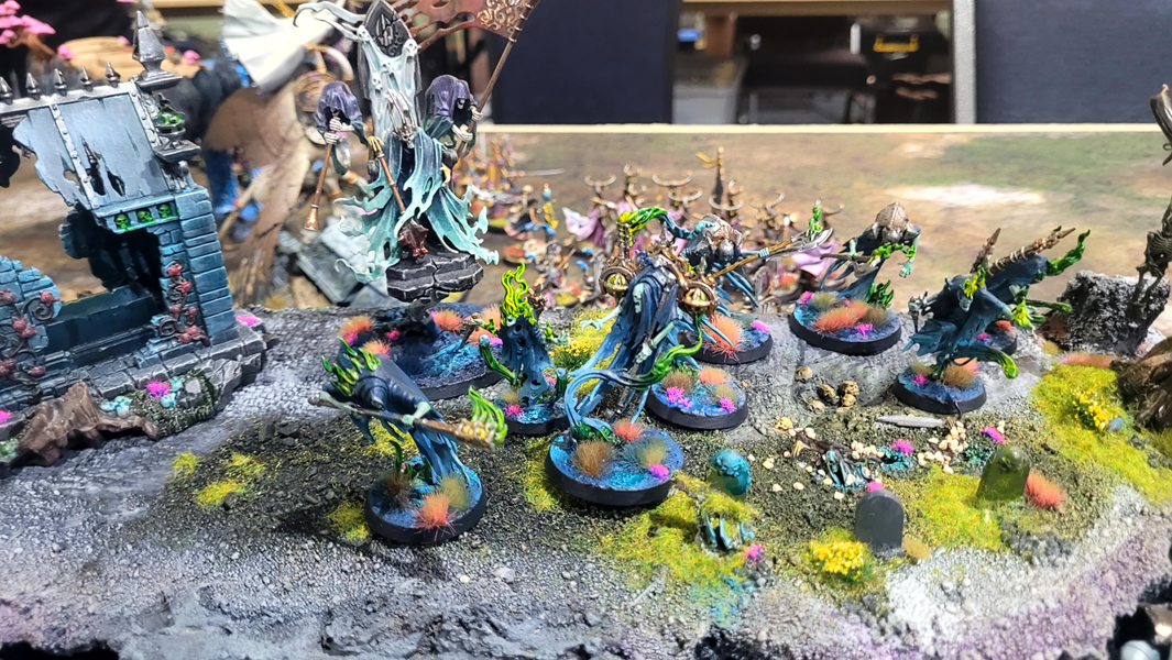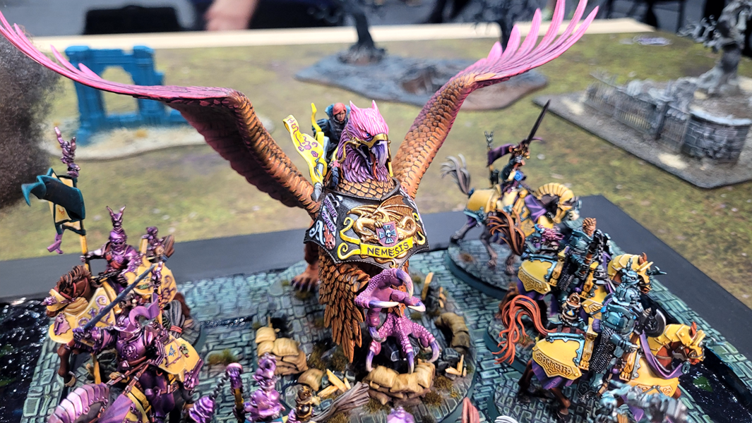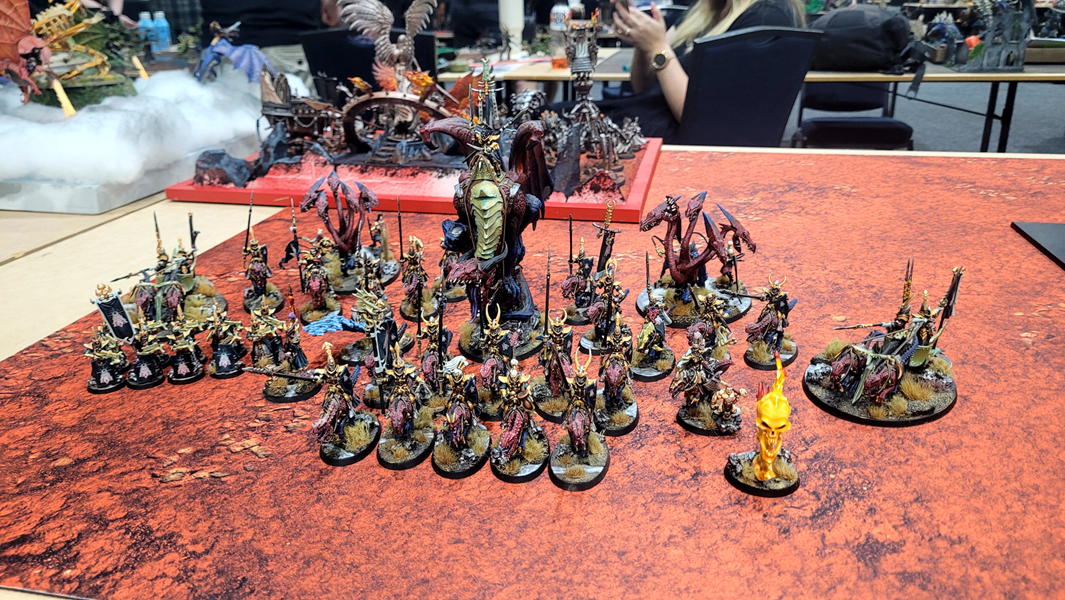 Christopher’s Cities of Sigmar army was rightfully the talk of the tournament. From the exquisite yellow and magenta theme to the intricate freehand, Christopher said he put 800 hours into this army. It shows. Characterful faces abound and all that wood grain was painstakingly painted free hand. Well done Christopher for a very deserving win!
