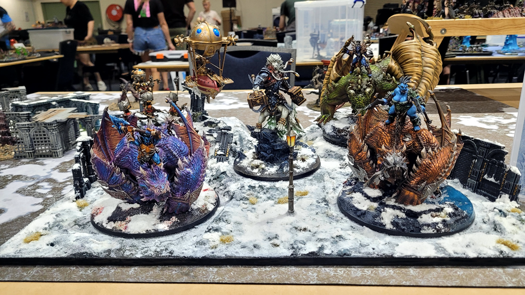 With so many deserving armies, players had a tough time choosing the winners, but choose they did. Second Runner-up was awarded to Craig Anderson for his incredibly fun cowboy ogres. Bradley Forster nabbed the silver for his sky pirate Skaven KO army, while Christopher Moore took home the Gold (in both Best Presented and Best Painted) for his exquisite Cities of Sigmar army.