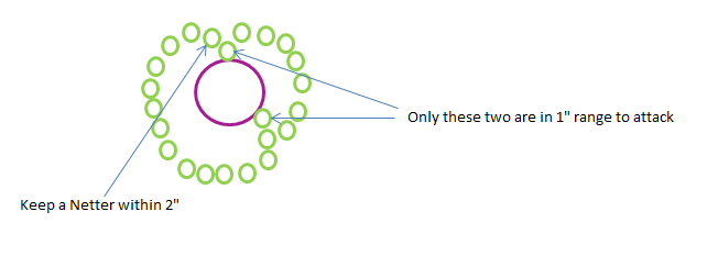 With the Netters debuffing the Keeper, two models locking her in place, nowhere to retreat to, and her summoning blocked off, these units are going nowhere fast.