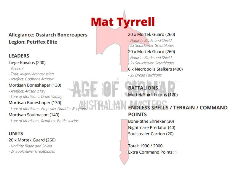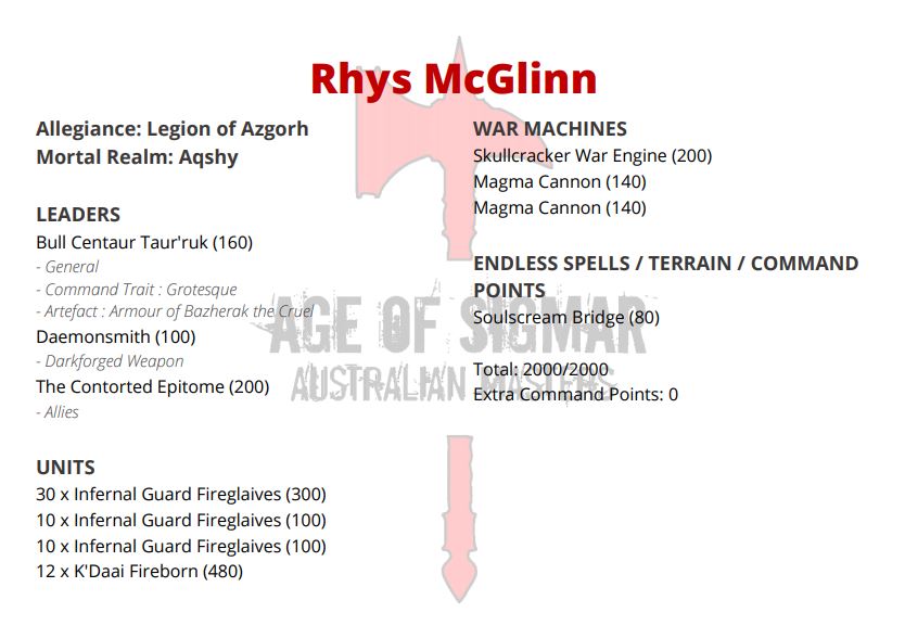 There is a theme in these list reviews that the top players in Australia got there by really knowing their army and getting the most out of it, rather than lurching from one flavour-of-the-month netlist to the next. Rhys is another shining example of that, having played the Dawi Zharr solidly for two seasons now.
