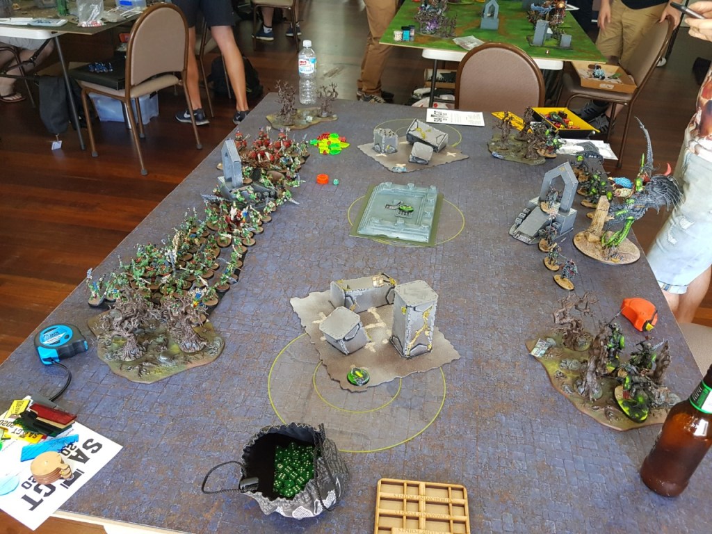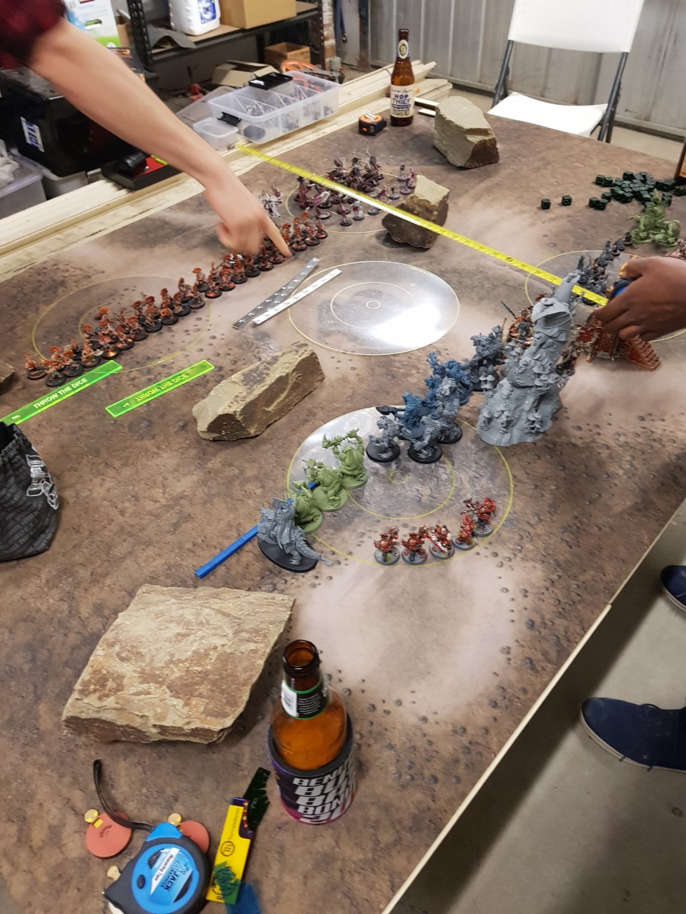 Get a visual on what needs to be where, move it there, and BANG you’re done. And if I never have to go through the end-of-turn rigmarole of measuring and remeasuring and countring and recounting and arguing over whether Plague Monk number 17 is just in or just out of 6″, I’ll be a happy Warboss.