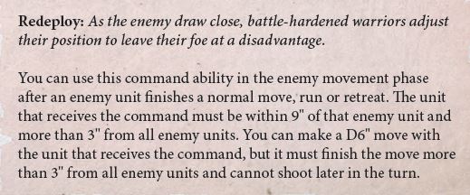 You will have to be savage in your decisions: Do you throw a crucial unit under the bus on the other side of the table, to save your one Redeploy for zoning out the key Objective? I can’t make that decision for you, but depending on the game state you might just have to. At the very least, you need to be aware of the choice you are making here.