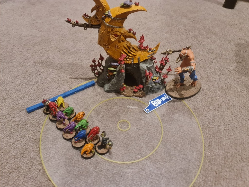 There’s a lonely Mancrusher on one wound, being a pain in the butt on an objective – but don’t worry, the Fungoid is just the lad for the job.