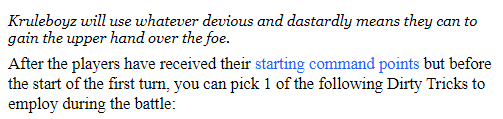 I’m still buzzing about Kruleboyz’ Dirty Tricks. It nails the hat trick: interesting, powerful and balanced.