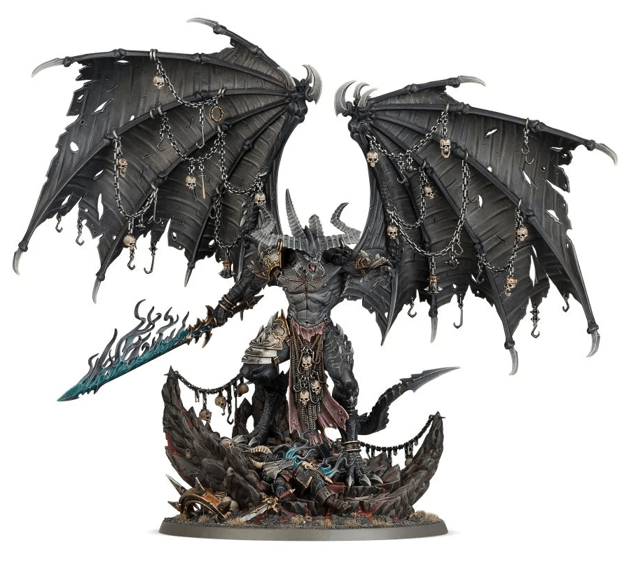 If you’re a painter, this guy is a dream come true. There are loads of opportunities to have some fun and showcase your skills here: the runemarks on his chest can really pop with some OSL, the chains and skulls (I know, I know) break up the darkness of the wings and the flaming sword lets you do flaming sword things – then just look at that base. An absolute menace.