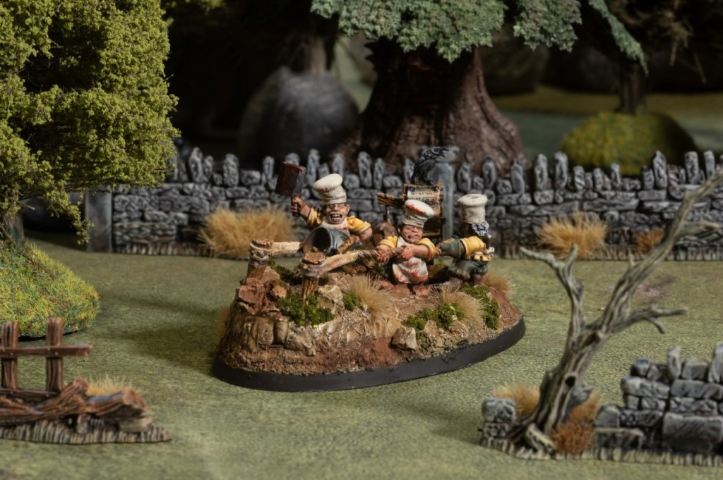 By nature a gentle and peaceful folk, the Gnomads prefer to live in harmony with the Realms – just as long as you keep your hands off their dinner plate. Although it might even be fair to say that the typical Feastmaster is built for pudding, not war, when roused they will defend nature’s bounty with all their might – and ferocious teamwork.