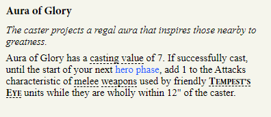 Those Hammerers can leap across the Bridge thanks to Spell in a Bottle, and they will do fat damage with a Runelord buff. The wombo-combo of extra attacks from your Warden King plus Artycle rerolls and Footnote exploding hits should push through plenty of dice at 2s rerolling 1s, which in turn helps to bang out loads of mortal wounds on your wound rolls: