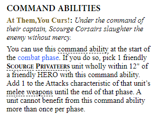 Those Corsairs are mean, with the Fleetmaster command ability and Lord Relictor spell combining to jack them up to 3 melee attacks on both profiles. It’s true that their stat lines are universally crap, but throw Curse into the equation and that’s a whole lot of pain!