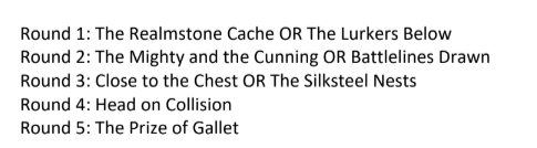 The pack for this one was pretty interesting: Day 1 was three rounds, each of which had two potential missions named in advance, with a roll-off on the day to determine which we would play. There was some real skew in there, including the one where you get VPs for slaughtering Gally Vets and the one where you can’t teleport, so there was a major risk-reward element to plotting your way through the peloton. Rounds 4 and 5 had pre-determined missions that were a little more straight-down-the-line: