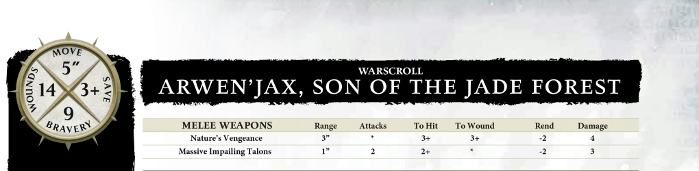 Nature’s Vengeance is a mighty weapon indeed, with 3 attacks on its top profile each dealing out 4 damage; but tread on Arwen’jax’s turf, and you will really incur his wrath: