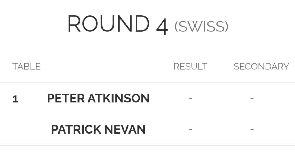 By the time I dragged myself in there I was already timed out, so that’s a 20-0 to Pat. Pat goes on to the big dance, and I was bumped down to Table 5 for my last game.