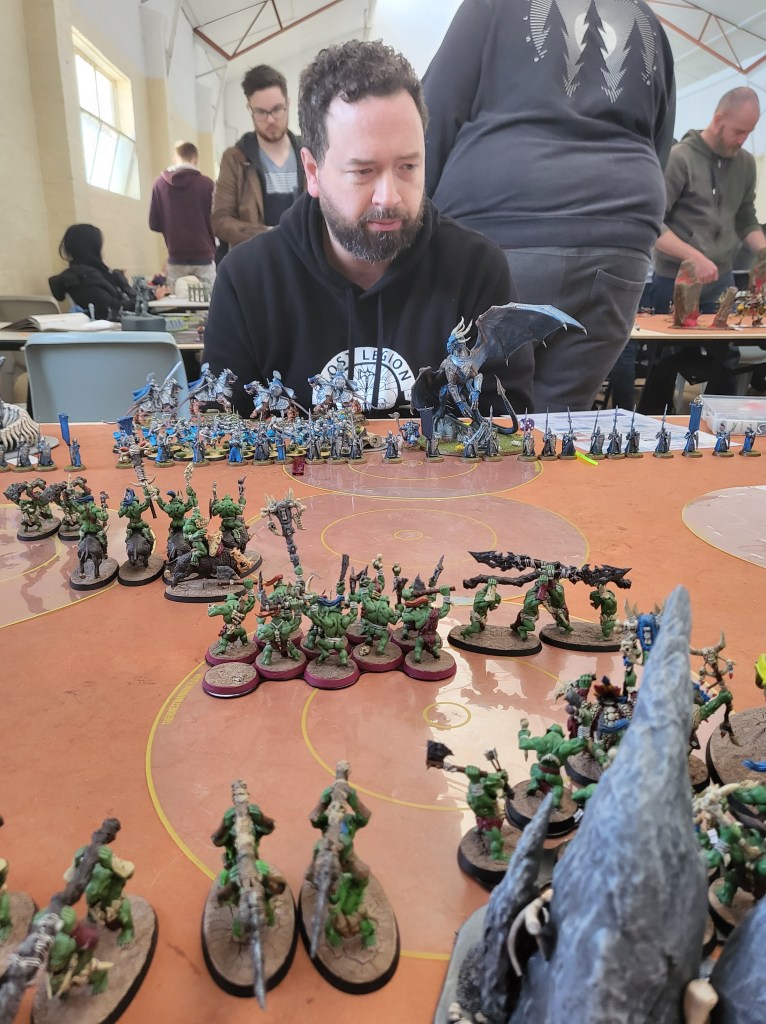 A true competitor, Wayne was rocking an interesting Skaven build with a couple of artillery pieces backing up the Censer Bearer insanity and the Verminlord brutality…with a cheeky side order of Thanquol. Worth noting that Wayne had gone for the “all-comers” 2+2 loadout on Thanquol which I really rate, because it means he’s always a menace in every phase of the game.