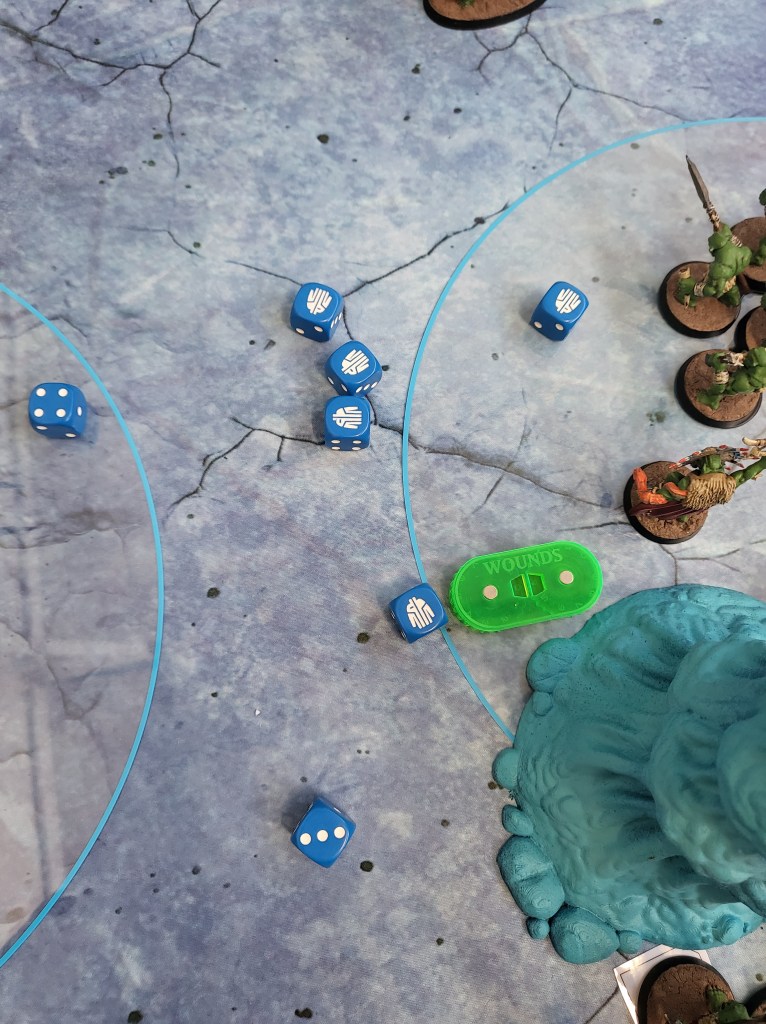 The Wardokk did his job here because the healing dance (on a 3+) combined with Heroic Recovery (only fails on a 9+) means you can quite reliably heal your ‘Goggs back up ready to go again. When you go from 6 wounds taken back down to 2, get ready to open up your shoulders and watch your opponent silently die inside.