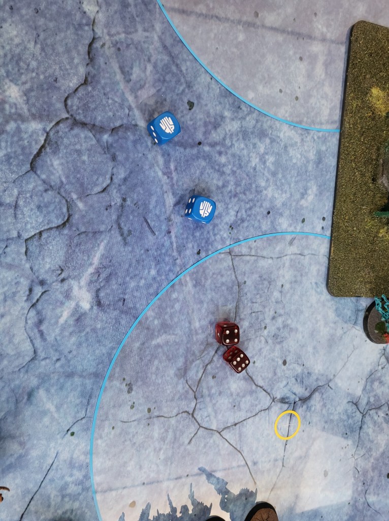 Mick had made a little castle but did need to contest the wide Objectives, meaning there was a bit of skirmishing around the edge while the true battle happened in the centre. I played the already-familiar game of baiting out overwatch with credible threats but when I nailed a long bomb charge that could get me through a gap and into his Reavers, I had to take it.