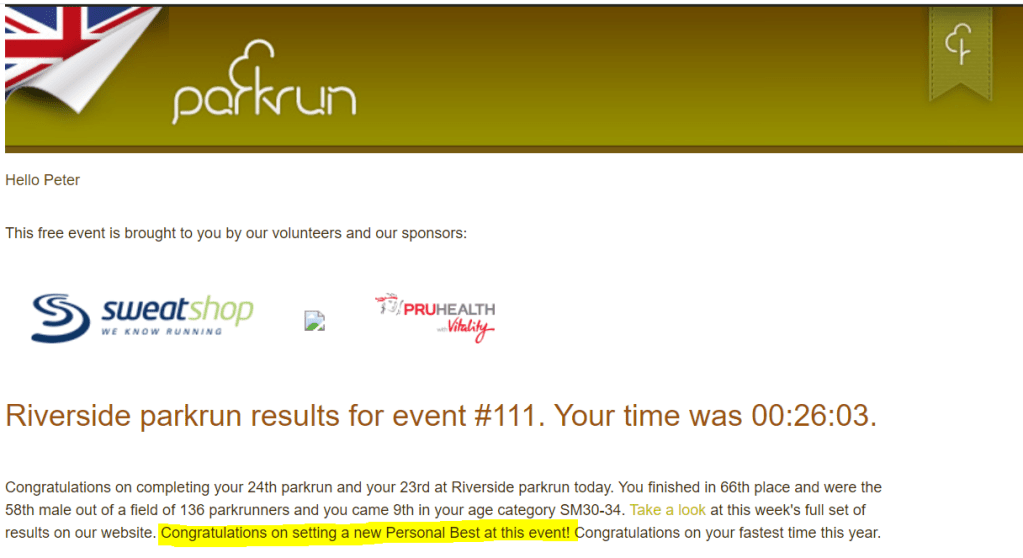 A few years back, some people at work started doing 5k runs on Saturday mornings through Parkrun, and you know how that goes – we’d be talking about it in the office on the Monday morning, so a bunch of other people would hear us yapping and want to join in, and it snowballs from there.