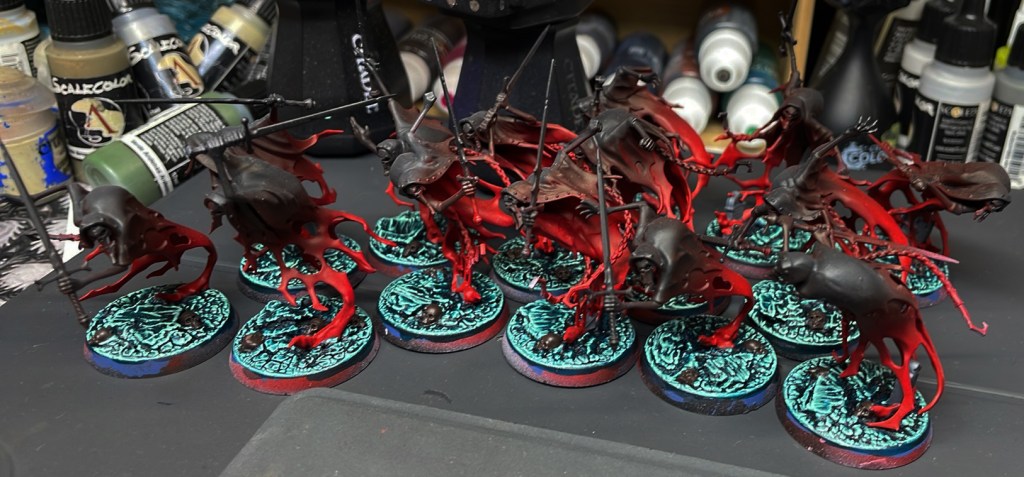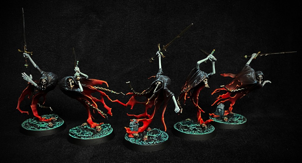 Wanted to give a full example of what my plans look like for my Nighthaunt, since it’s the project I’m currently working on, batching and getting progress out of all that. I have various different batches I do, and sometimes I finish a model beginning to end, but I always use the same processes. Batches get me through the big units though. I lay out my paints, my process and then how they lock together.