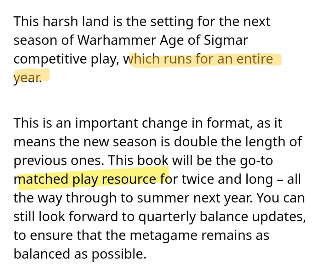 The 6-month cycle is only one of many reasons why a lot of people aren’t quite feeling the buzz right now (despite a healthy meta); but it’s a big one, and an easy fix, and they’ve done it. This will help us all enjoy our hobby that little bit more, so well done GW for taking on board the community feedback.