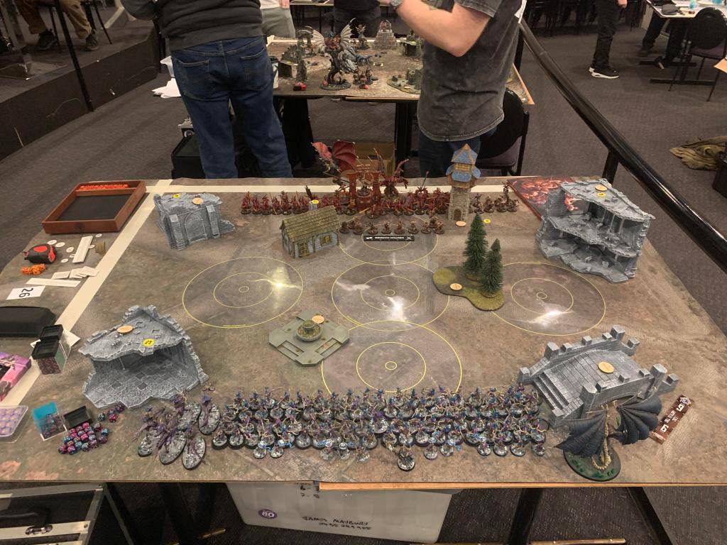 The most challenging game was the mirror match with Bob Van Emmerick in Round 5. With a very tired and hungover head he showed me what an experienced Soulblight player can really get out of the list. One of the coolest moments was when he hit a long bomb charge with some Zombies out of the grave on turn 1, to bog down my 15 Black Knights. After combat there were 6 left at the start of my turn holding my Knights in place. I managed to cast Curse of Exsanguination for the first time ever with the VLOZD, and proceeded to kill them all one by one, rerolling the mortal wound and Bob missing the ward save every time, freeing up my Knights to move and charge later in the turn. Didn’t win me the game but very fun interaction.