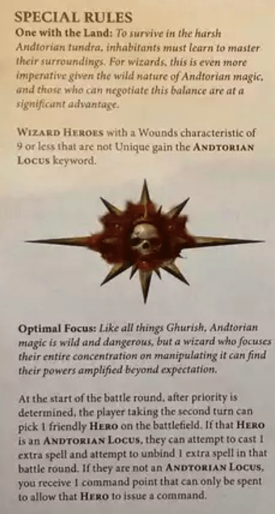 An edge case that springs from the page is that the Wurggog Mask staring ability also takes place at the start of the Hero Phase. So he can stare down some chump until they’re on 1 wound, choose Magical Mayhem once you have that knowledge, and then pop them off with an Arcane Bolt or such like.