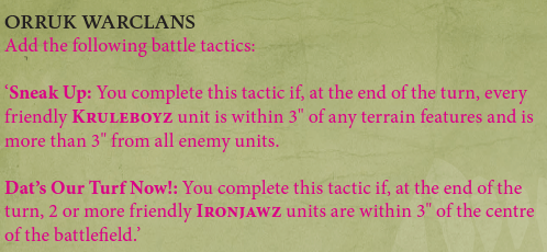 Check out those easy battle tactics! Big Waaagh is going to be a tactic scoring MACHINE this season.