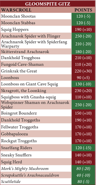Man even Troggs got batted. The entire army more or less got points increases alongside nerfs to Squigs, who can’t snipe people with Squigs Gone Wild anymore (which is a good thing, in my opinion). I know several players have seen their lists go up minimum 100 points. Will Gitz continue to perform? Only time will tell.