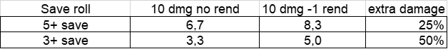 And it’s the inverse for rend, where rend has more impact the better the armour save of a target: