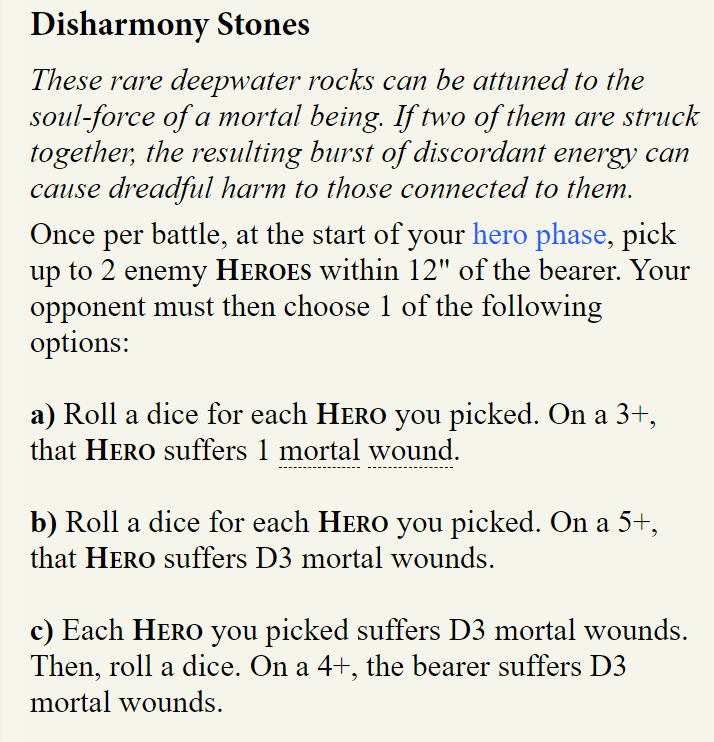 The design philosophy behind this one is a puzzler. A fair chunk of the Ogor book seems to have been written on the Friday afternoon before a long weekend but why include this at all. It is a direct port from the last book where it was equally useless. I can only assume that, because Icebrow’s had 3 artefacts in the old battletome they decided to give them one in the new tome and rolled randomly to see which one they would keep.