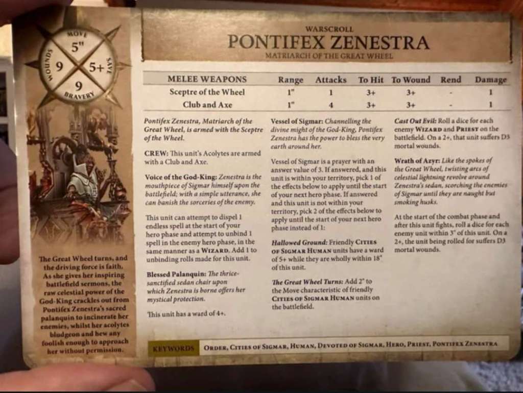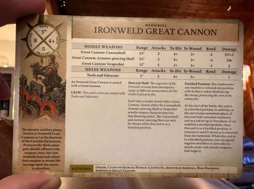 Urgh, this thing. The model is a scruffy piece of shit that should have been Legended long ago, but often sees way more table time than the mini deserves because whenever Cities are good, it tends to be OP. Similar-ish to the old warscroll, and now with an extra wound and it doesn’t bracket.