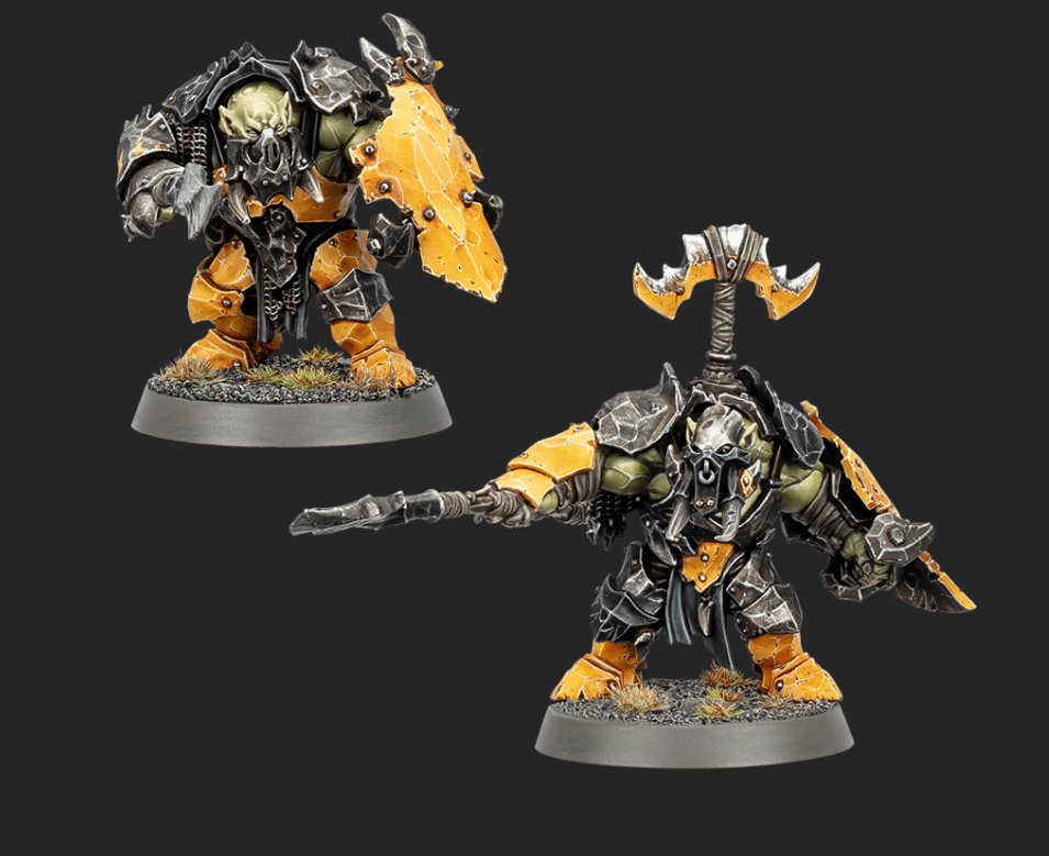 Fucking BANG! They have smashed it with these guys. The aesthetic is just perfect, bringing together call-back design elements of classic Orruks, but modernized and blended with the modern Ironjawz look. One really neat touch is the semi-circular rim above and behind their neck, just like the Brutes and Megabosses have. Pure art.
