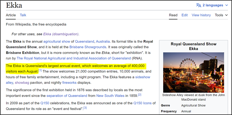 You’ve got small-town Shows like ours, Mega-Shows in the capital cities and everything in-between. Check out the highlighted sections below and you’ll get a feel for what we’re dealing with here: