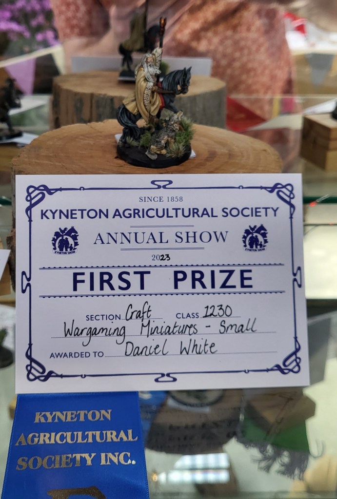 Brilliantly, some of the entries (and winners) came from outside of our own gaming group – just local people who were already out there painting minis and doing their thing, who came across the Wargaming Miniatures category in the Craft section and had a crack. One of whom has already asked the Show Committee to put us in touch, because he’s keen to roll dice with us – I’d call that a win.