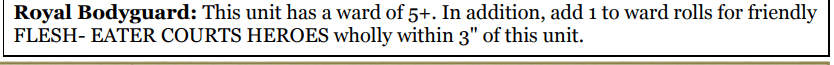 He does have the Monster keyword which has become a bit of a mixed blessing with all the specialist monster hunting units around these days. Still pretty good though. He also has the Abhorrant keyword to return units. Interestingly he has the Hollowmourne keyword which is a faction buff he can’t use, so you won’t lose a lot taking him in another subfaction.