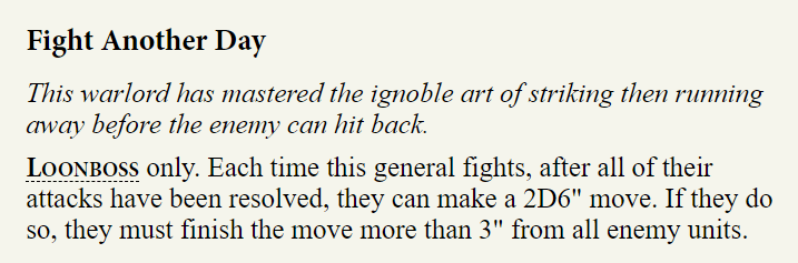 If the opposition can move fast and hit hard, there’s only one thin screen standing between this army and annhilation, and when the Loonboss crashes he takes the Grand Strategy down with him. That’s not hard to do with his 4+ save. But being a one-drop gives David a lot of control over Prio, so it’ll be rare that you get the chance to pop the Shootas then double him; and in King’s Gits you may well have to table the army twice to put it away for good. If you think you can easily handle 8 Boingrots coming back from the Shrine, you probably haven’t been playing against 8 Boingrots very often.