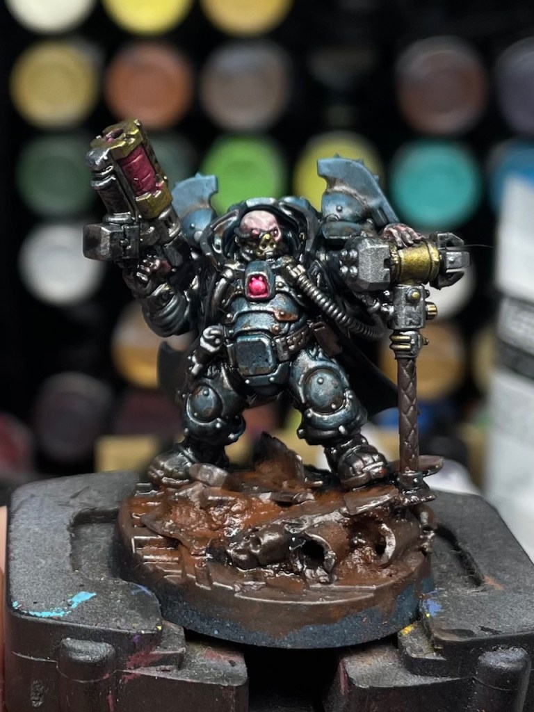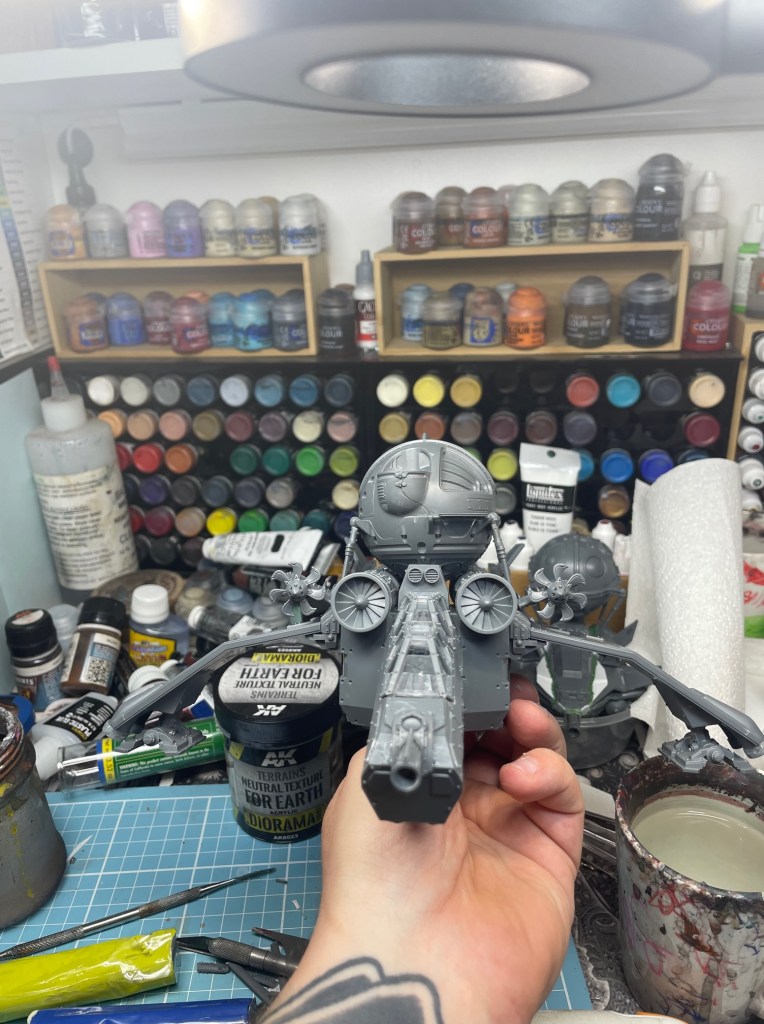 Some of the stages of painting underway currently…Airbrush prime + some details, blocked in colours, oil / pigment wash stages. Getting wins where I can!