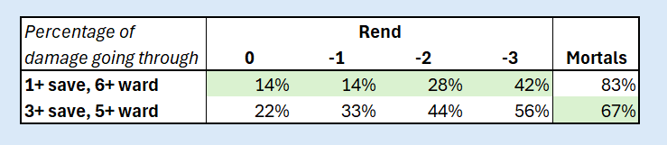 That 4+ save evaporates so quickly against even milder rend, and the increment from a 6+ ward to a 5+ ward is not enough to compensate for the detonation of your core armour save. Even against Rend 3, the classic 2+ 6++ profile is superior – it’s only when we get to mortal damage that the new profile comes to the fore.