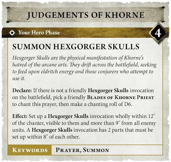 Just in case you were wondering what you needed to roll to summon the Hexgorger Skulls, and weren’t the least bit curious about what they actually do, they included the summoning prayer and not the Warscroll. I guess they wrote the article on a Friday?
