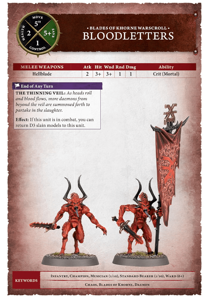 Really not a Bloodletter guy but these guys got a bump. Ward save and auto-returning models to officially confirm that they are, in fact, the Skaven Clanrats of Khorne. They don’t return models if you aren’t in combat so if you want them to last, don’t kill anything?