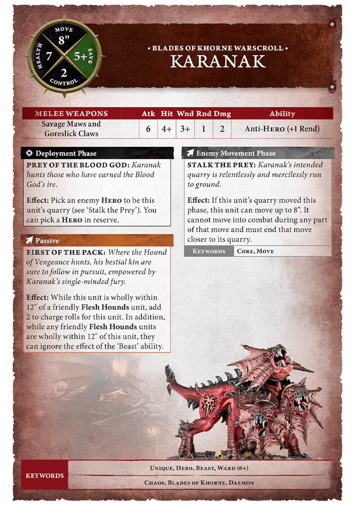 A few people in the Craichouse discord got a bit excited about his Chosen Prey rules and out-of-phase movement until I pointed out that he has better out-of-phase movement rules now, and can’t make it into a competitive Khorne list. Plus you can summon Flesh Hounds directly into combat off him currently. In 4th you can stop his out-of-phase movement by standing still in a game of freeze tag. He did get extra rend vs heroes so in the unlikely event that he makes it across the battlefield he could get lucky and kill a support hero.