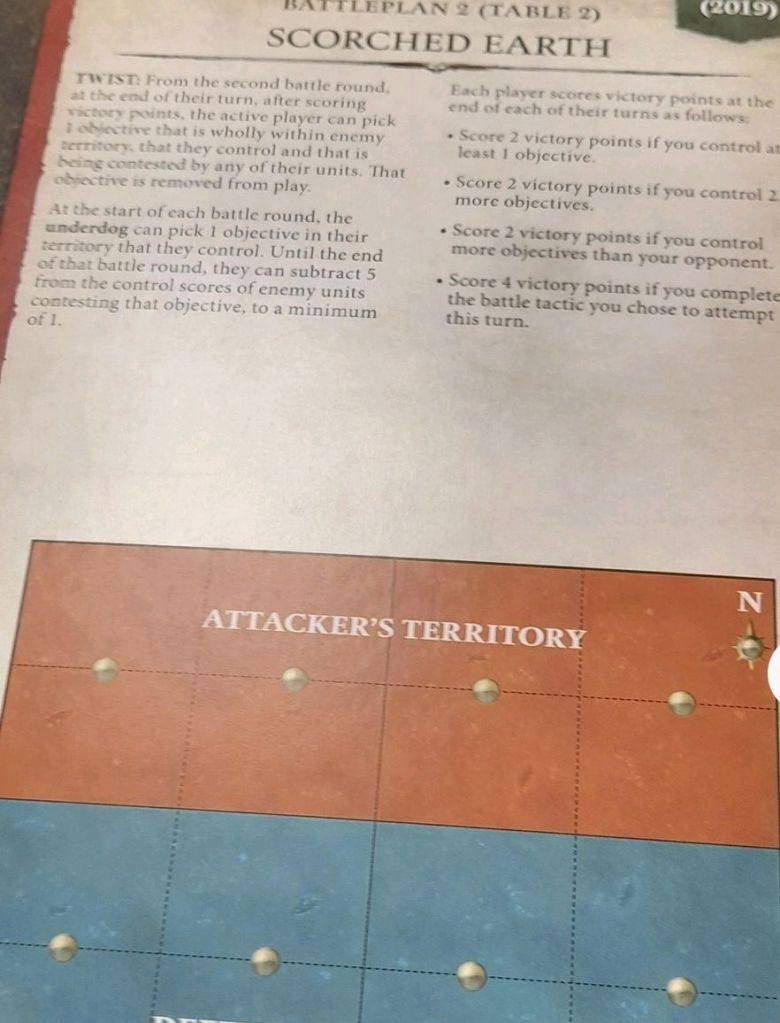 Another goodie. 1 objective wholly within enemy territory per battle round (from the second onwards) means that you can start punting them forwards early with a view to zapping them later. You’ll need to move them 12″ forward to get them wholly into enemy territory so it’s probably going to take two turns each anyway. You don’t actually score any VPs for doing that, but it does put you in complete control of what gets burnt and when.