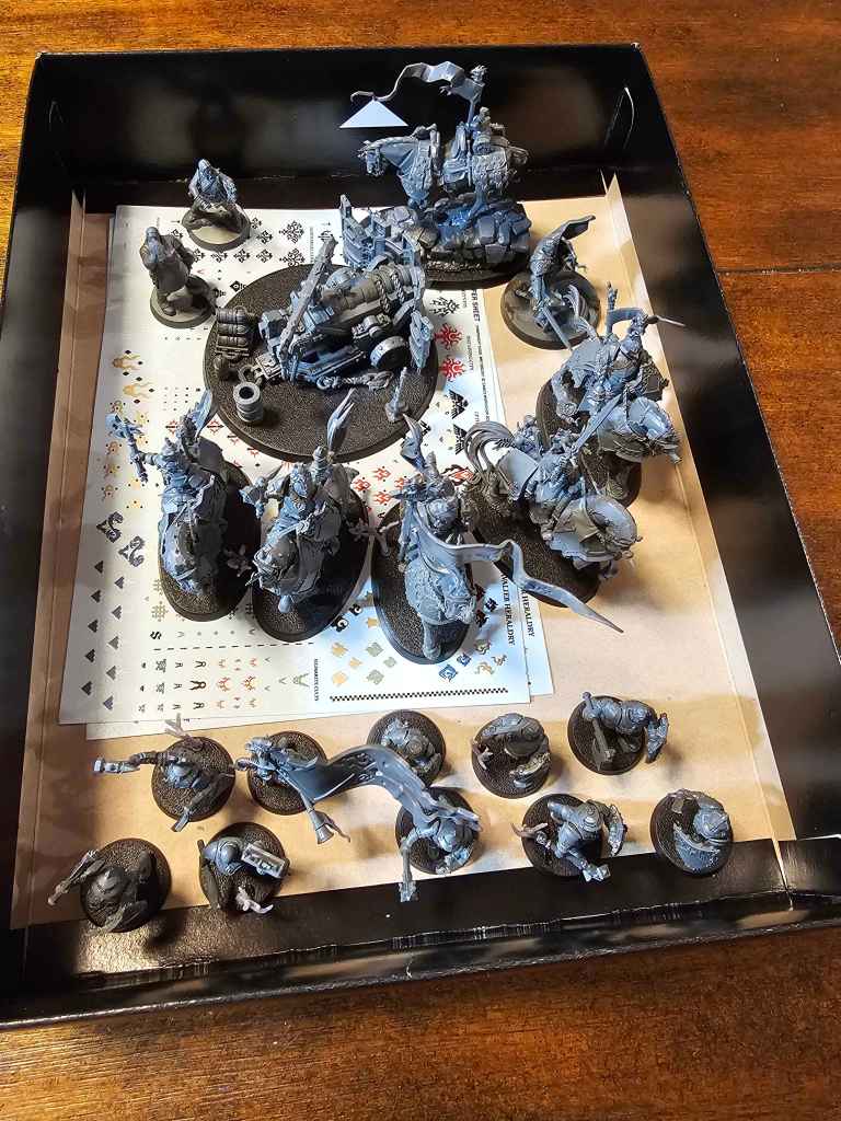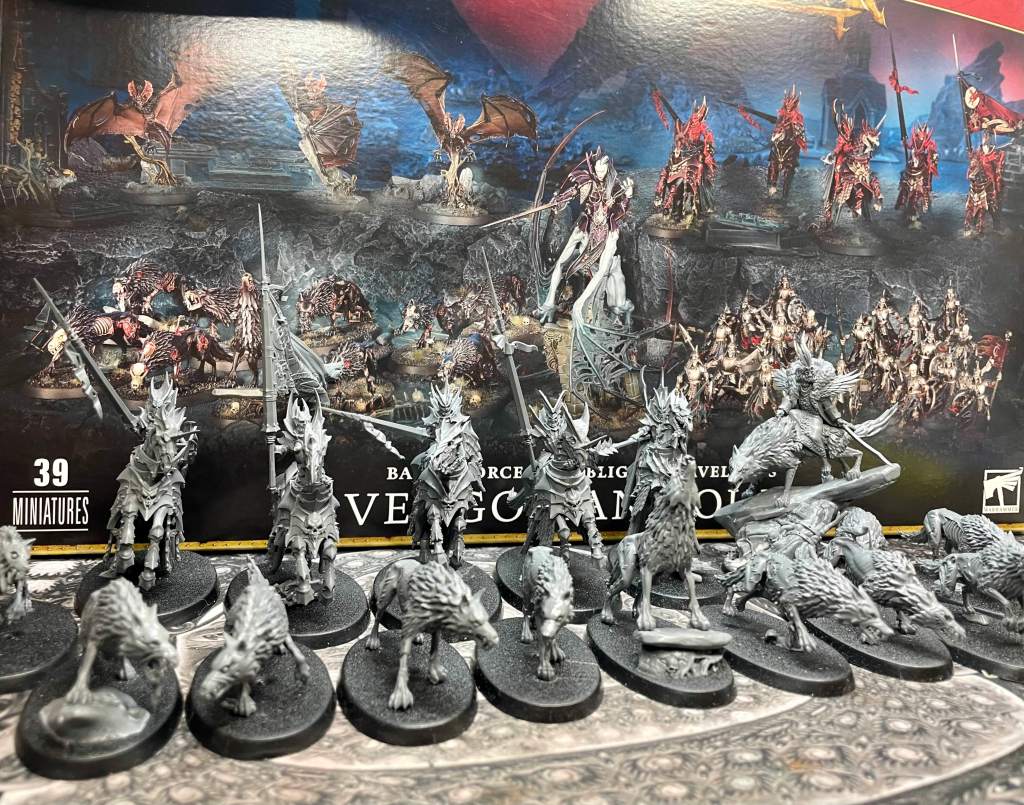 Seanzor has modified his “Spearhead”-equivalent based upon the contents of the Vengorian Court Christmas box + Belladama. Aim is to build towards a Dire Wolf heavy list into the new edition.