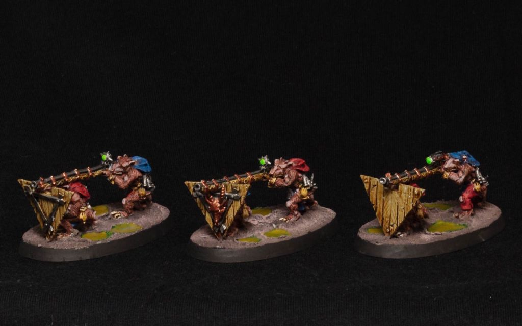 Assuming all of the above pays off, that is–on average–24 Shots (when overcharged) or 14 shots (otherwise) on a 3+/2+/-2/1 with Auto-Wound at 20″, for a total average number of shots between three Ratling Warpblasters (assuming one is overcharged) at a mouth-watering 51 shots for 17dmg avg (nice).