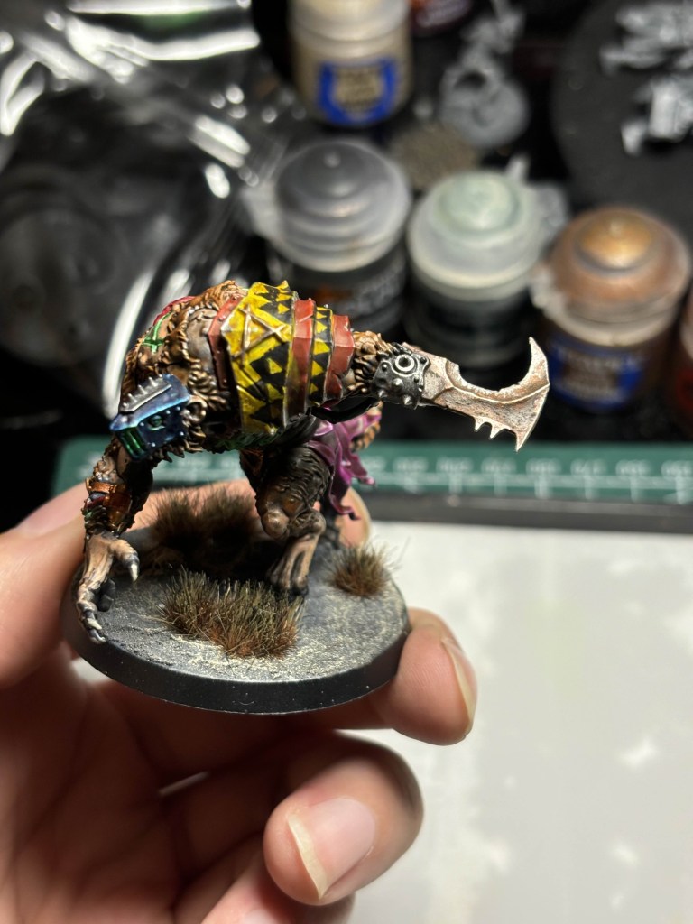 Dan’s painting these last two weeks has been epic! Really starting to see this whole thing come together with the Skaventide goodies in hand, and a clear plan in place for painting. These new Skaven kits are absolutely stellar and Dan has done them great justice! Check out that hazard pattern pauldron and the weathered (and bloodied) blade.