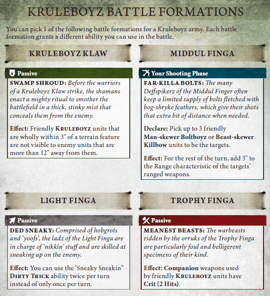 Anyway. The good news is that we’ve now got three solid options from the four available. I think you could experiment, mess around with listbuilding options and not get bored of Kruleboyz even if you mained this index for a very long time.