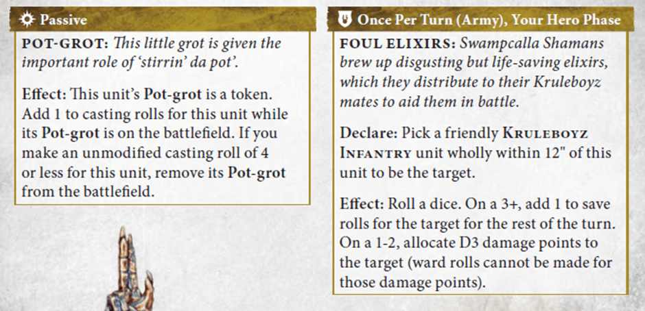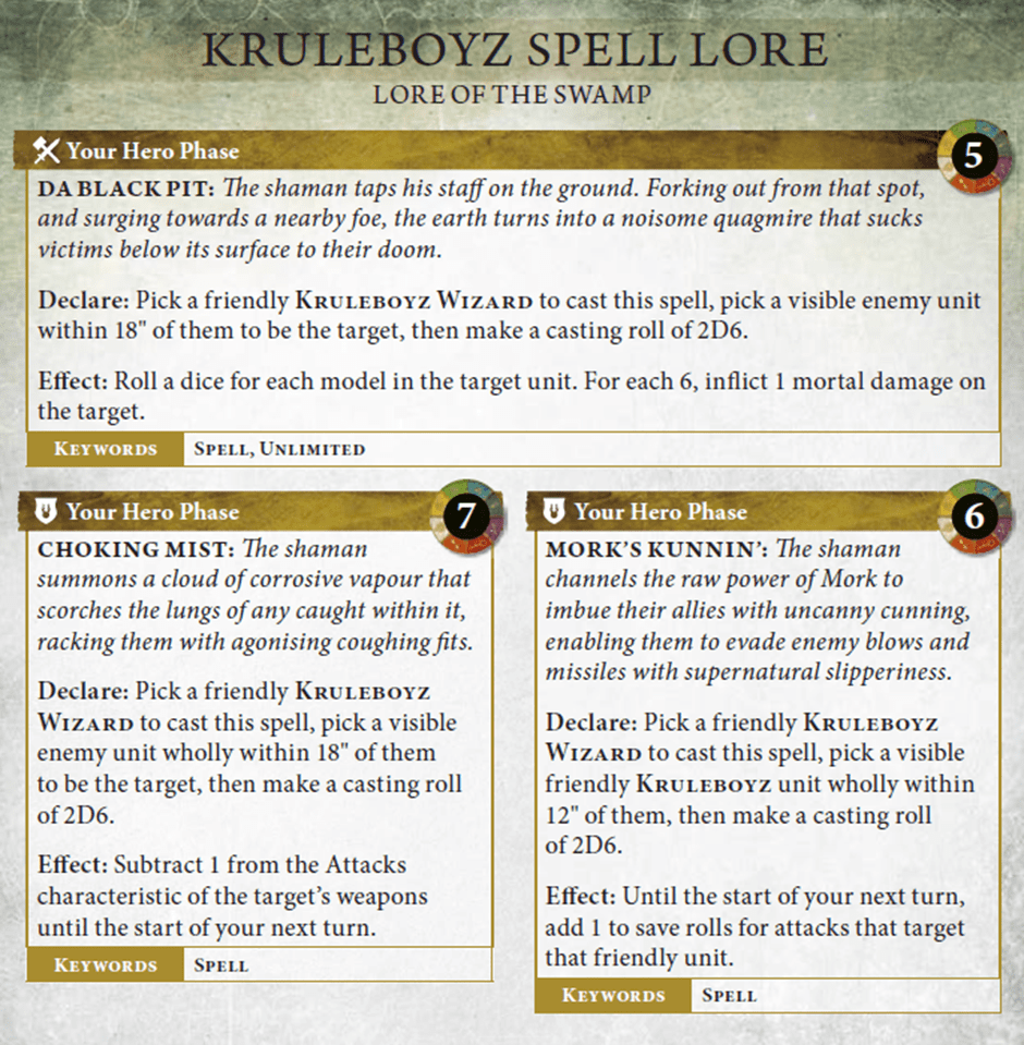 And all of this into a Kruleboyz unit with +2 stacked armour saves (source: Mork’s Kunnin Spell and Foul Elixirs ability) and a 5++ Ward Save from the Murknob or Pebble too. Good luck.