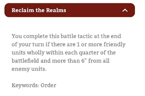 Your Gutrippaz are often tough enough to Seize the Centre and not crumble (especially when they fight first), and you can also drop a cheap unit of Boltboyz or Monsta Killaz onto terrain for Take Their Land. Your shooting units might also be able to pick out a soft unit in their General’s Regiment to Slay the Entourage. From mid-game onwards you’ll be open to scoring the general tactics for fighting and taking objectives so although you don’t have two fast, cheap units to run up the edges and score Take the Flanks, I don’t think you’re so bad at BTs that it’s a deal-breaker.