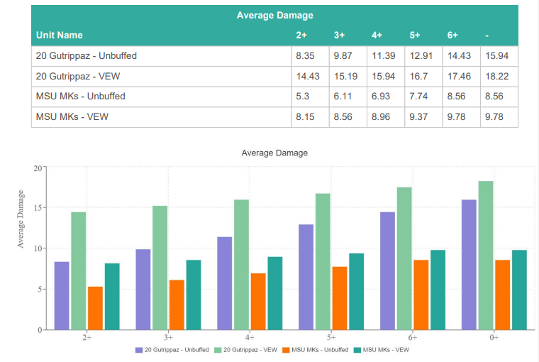 There’s a further bit of nuance that the VEW Dirty Trick will last right through to your next turn, but the SV ability will not: so you might be cracking out mortals on a 5+ in your opponent’s turn if you’ve already activated it, but you won’t have the Damage 2.