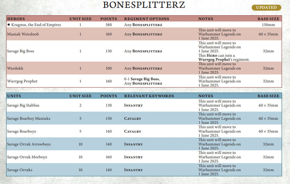 Everything else – Ironjawz, Ogors and Bonesplitterz – I think you’re only playing for the love. I’ll personally be alternating between toiling away with various Bonesplitterz builds, and having a proper crack with Gits and Kool Boyz. Let me know what you’re going to be playing over the next few months, and if you’re one of the Ironjawz players who’s been revitalised by the changes: I sincerely wish you good luck and great fun, and I’m keen to hear how it goes.