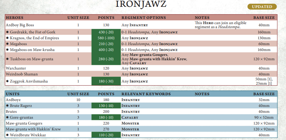 Ironjawz might be the only army where Kragnos dropping to 580 is not a net win, because they have so many abilities that trigger on charging. So the loss of 3D6 countercharge really does hurt Ragerz for example: