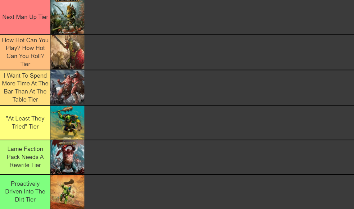 So can you still fit 18 Rockies? Yes, you can still fit 18 Rockies. The meta build still works, and with the truly S Tier armies coming down a bit, all those filth chasers who loaded up on Troggs can celebrate another three months minimum of standing around on circles. They’re somewhat of a gatekeeper army, and still a solid 4-1; basically peak Mega-Gargants, but somehow retaining better PR.