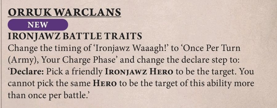People have had some limited success with Ragerz spam, and if I was to play this faction currently myself, I’d probably try Bulk Ardboyz. I can’t say the idea particularly excites me though. Good luck to the people who are energised to give them another crack with this update and I honestly hope you have a great time. But my own Ironjawz are gonna be shelf-warmers until the book comes out – let’s hope that GW does a better job on that, because this Faction Pack has been a disaster.